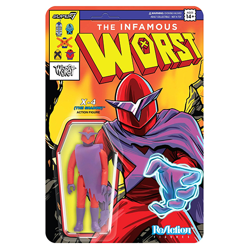 スーパー7の手掛けるリアクションシリーズからSDCC2024限定アイテムとして、80sキッズたちの「ぼくの好きなカッコイイやつ」感全開で展開する我らがスーパー7のオリジナルシリーズ「ザ・ワースト」が登場!こちらはロボット暗殺者「X」の第四世代で暗闇に紛れ攻撃をしてくる凶悪ロボ「X4ザ・シャドウ」。どこかで見たバックカードにどこかで見たカラーリング、X1からX5までどのキャラクターも最高にやりたい放題!3.75インチファンは要注目です!!