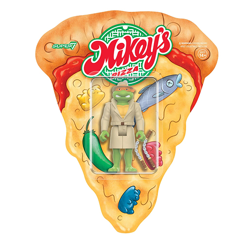 スーパー7の手掛けるリアクションシリーズからSDCC2024限定アイテムとして、1987年のタートルズアニメシリーズからシーズン3のエピソード「Pizza by the Shred」からインスパイアされたアイテムが登場です。ミケランジェロがCMを見てお忍びでピザを買いに行くピザ店「Weird Pizza to Go」。お忍び姿のミケランジェロが、"とんでもピザ"の限定バックカードになったスペシャルなアイテム。