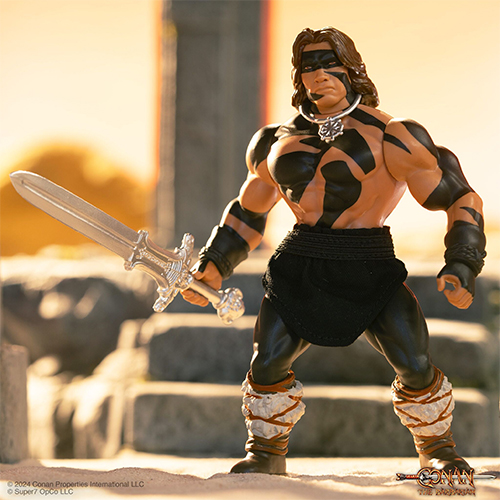 小説を元にコミック化も行われ1982年にはシュワルツェネッガーを主演に迎え映画『コナン・ザ・グレート』。その映画の主人公コナンが、マテルの傑作トイ『マスターズ・オブ・ザ・ユニバース』、プレイメイツの『ミュータント・タートルズ』、『毒々あにめいしょん』など80年代を賑わした"ずんぐりマッシブ"なレジェンドトイたちのスタイルにリスペクトを捧げる、スーパー7の新たなるフィギュアシリーズ「ヴィンテージフィギュア」に、限定品となる「ブラッド・スプラッター ver.」に次いで、血しぶきの無いウォーペイント姿が登場。このマスターズ・オブ・シュワちゃんフィギュアは見逃せない!