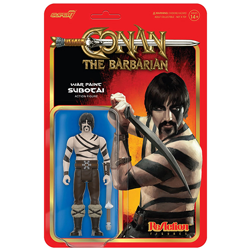 小説を元にコミック化も行われ、シュワルツェネッガーを主演に迎え1982年映像化された『コナン・ザ・グレート』。人気のスーパー7のリアクションフィギュアシリーズから、魔女に囚われていた盗賊で後のコナンの冒険には欠かせないサボタイが、タルサ・ドゥームの待つ神殿に潜入する姿「ウォーペイント」版となって登場です。付属品としてソードが付属。