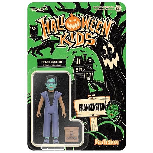 70~80年代にアメリカのハロウィンでオーソドックスだった"お面と簡易コスチューム"に身を包んだ子供たちからインスパイアされたスーパー7のリアクションフィギュアシリーズ「ハロウィンキッズ」。こちらは、ハロウィンの大本命ユニバーサルモンスターズから、フランケンシュタインの怪物のマスクと簡易コスチュームに身を包んだハロウィンキッズ。