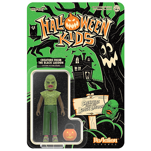 70~80年代にアメリカのハロウィンでオーソドックスだった"お面と簡易コスチューム"に身を包んだ子供たちからインスパイアされたスーパー7のリアクションフィギュアシリーズ「ハロウィンキッズ」。こちらは、ハロウィンの大本命ユニバーサルモンスターズから、大アマゾンの半魚人ギルマンのマスクと簡易コスチュームに身を包んだハロウィンキッズ。