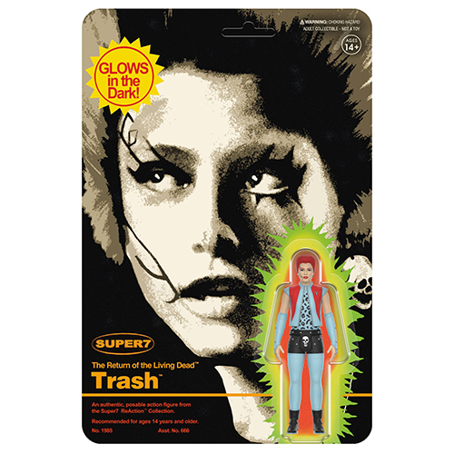 スーパー7が手掛けるリアクションフィギュアシリーズに、まさかの参戦となった映画『バタリアン』。墓地でのシーンでは多くの観客を釘付けにしてくれたゾンビ化する前のトラッシュが、今回スーパー7ではお馴染みとなった、今は無きメーカー「レムコ」が1980年にリリースしていた「Glow in the Dark Mini Monster」をリスペクトしたバックカードで再び登場!もちろん仕様はグロウ・イン・ザ・ダークとなっております!蓄光仕様+レムコ=フィギュアファン歓喜なアイテム。