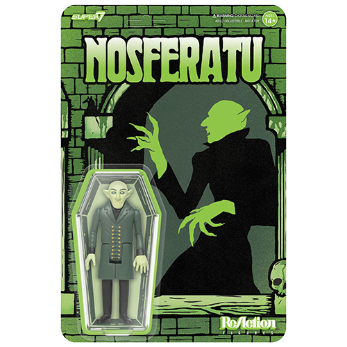 ヨーロッパにおける吸血鬼伝説や、ブラム・ストーカーの怪奇小説を元にしたとされる、F・W・ムルナウによる1922年最初期のドラキュラ作品の一つであるサイレント映画『吸血鬼ノスフェラトゥ』から、スペイン版ムービーポスターからインスパイアを受けたカラーリングとなった、オルロック伯爵が、リアクションフィギュアとなって登場です。このマニアックな仕様はスーパー7ならではのこだわりのアイテム。