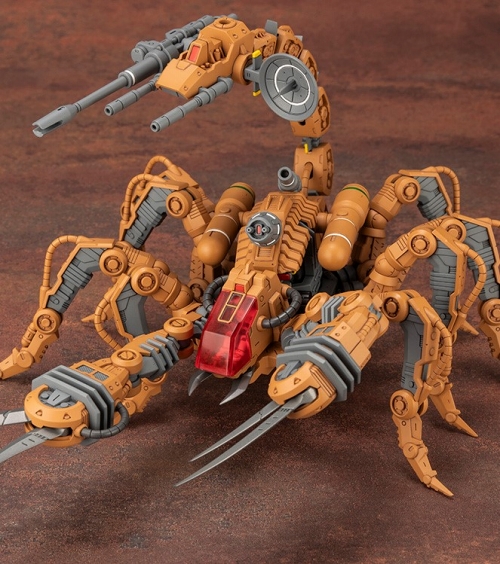 大ボリュームのボディにギミック満載の凶戦士が再登場!HMM商品化アンケートにおいて、長年ユーザー投票の上位に君臨し続けたデススティンガーは、帝国軍が開発した水陸両用の海サソリ型巨大ゾイド。大出力の荷電粒子砲を装備、デスザウラー並みの超重装甲を纏ったその戦闘力はブレードライガーとジェノブレイカーの二大オーガノイド搭載機が、二機がかりですら圧倒される程。ストライクレーザーバイトシザースは開閉して「収納式AZ105mmリニアキャノン」を露出させることができます。頭部装甲は開閉し、装甲下に隠された邪悪な複眼はクリアーパーツで再現。 コックピットは開閉させパイロットを搭乗させることが可能です。