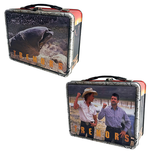 アメリカではランチバッグを始め、宝物入れや小物入れなど、様々な用途で身近で使用されているティントート。ファクトリーエンターテインメントから映画のメインビジュアルや劇場ポスターなどのデザインを落とし込んだティントートが再び!こちらは、今なお語り継がれる名作『トレマーズ』の危険生物グラボイズと、それに立ち向かうバルとアールの姿がデザインされたティントート。