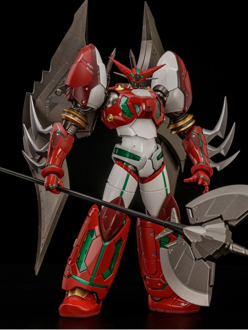25周年を迎えたOVA『真ゲッターロボ 世界最後の日』から、「真ゲッター1」が千値練のライオボットシリーズに再登場!ダイナミック企画の監修のもとデザインアレンジをケミカルアタックが担当した本フィギュア、圧倒的なボリューム感とアクション映えするマッシブでパワフルなデザインに!クリアパーツを多用し内部メカモールドを再現、さらに合金素材を使用した重量感は圧巻です。リニューアル版は全身フル塗装仕様に加え、新規造形の武器も追加。今回新規造形された超巨大なゲッタートマホーク、なんと変形し背中へ装備させウィングにもなるオリジナルギミックまで搭載!