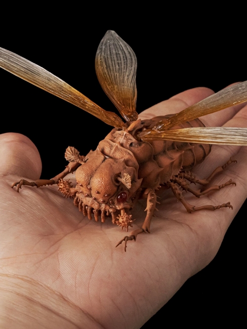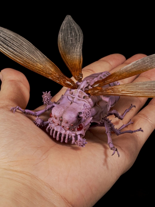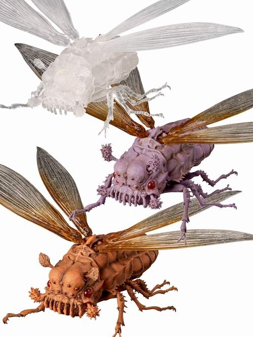 千値練で展開となる「タケヤ式自在置物」。日本を代表するアニメスタジオ「スタジオジブリ」の全面監修のもと、『風の谷のナウシカ』に登場する「ウシアブ」がミニサイズのアクションフィギュアで登場します。造形作家・竹谷隆之氏が中心となり、精密なアクションフィギュアとして立体化。リアルで生命感溢れる造形、内部に仕込まれた独自の可動ジョイントにより、外殻が動く姿を再現する事が出来ます。4枚の羽はボールジョイントで可動、大きなふたつの眼は奥行きのあるクリアパーツにし、専用台座で飛行シーンも再現可能です。映画本編カラー、原作コミックスカラー、クリアの3種展開です。