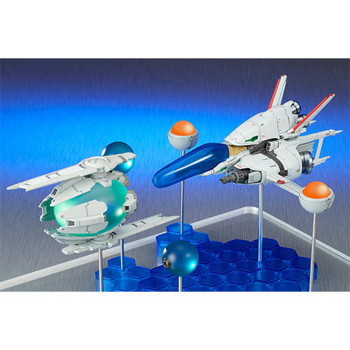 名作シューティングゲーム『R-TYPE』から次元戦闘機シリーズ第五弾、R-9/0 RAGNAROK"ラグナロック"にシャドウ・フォースが装備されたスペシャルエディションが登場です。バイド体を用いない完全な人工のフォースと、支援兵器のシャドウ・ユニットが付属。台座の配置と支柱の差し替えにより、劇中での様々なレイアウトを再現可能です。
