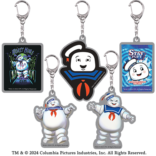 80年代に公開され世界中を巻き込み大ヒットを呼び、80年代を彩った映画作品の一つ『ゴーストバスターズ』シリーズから30年後の世界を描き多くのファンの心を揺さぶった『ゴーストバスターズ/アフターライフ』。そして、待望のアフターライフの続編となる『ゴーストバスターズ/フローズン・サマー』公開に併せて『ゴーストバスターズ』シリーズを象徴するグッズが登場!こちらは、愛くるしいゴーストバスターズを代表するアイドル!?マシュマロマンのアクリルキーホルダー、バストアップ、全身、全身(怒り顔)、スクエア、フェイスアップの5種をセットにしたアイテム。