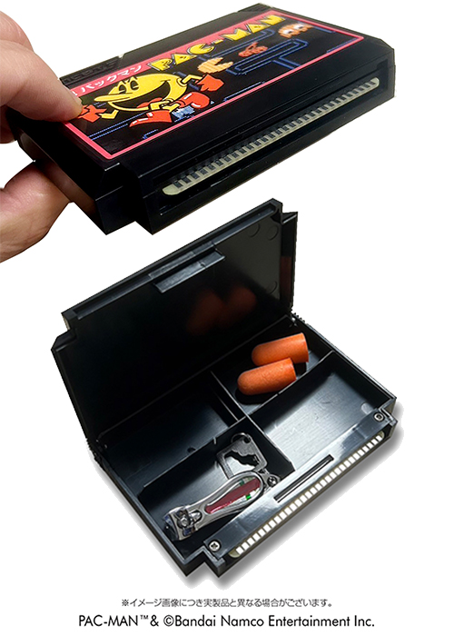 見た目は昭和ノスタルジー漂う懐かしのゲームカセットですが…実はこれゲームカセットの形をしたレトロ感溢れるケースなんです!本体はもちろん、パッケージや説明書に至るまで、本物のゲームカセットそっくりに再現。カードホルダーとして使用したり、付属のパーテーションで仕切りをつくったり使い方はあなた次第!フィギュアのパーツ入れにしてもGOODな可愛さ!初回生産分では付属のシールに「あたり」がついていたら非売品の「FCCパックマンゴールドver. 」がもらえるキャンペーンも開催!