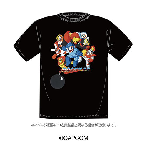 1987年にカプコンからファミコン用ソフトとして登場し、今まで数多くのシリーズを生み出した看板アクションゲームの一つ『ロックマン』。暴走するロボットたちを止めるべく自らを戦闘用ロボットに改造する事を決意し、Dr.ワイリーの野望に立ち向かう記念すべき一作目となる『ロックマン』から、箱絵として知られる敵ロボットたちと共にロックマンが描かれたアートがロックマンを思わせる「ブルー」と使いやすさのある「ブラック」の2カラーでTシャツとなりました。