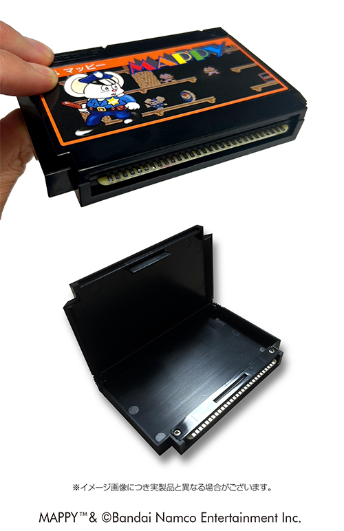 見た目は昭和ノスタルジー漂う懐かしのゲームカセットですが…実はこれゲームカセットの形をしたレトロ感溢れるケースなんです!本体はもちろん、パッケージや説明書に至るまで、本物のゲームカセットそっくりに再現。カードホルダーとして使用したり、付属のパーテーションで仕切りをつくったり使い方はあなた次第!フィギュアのパーツ入れにしてもGOODな可愛さ!初回生産分では付属のシールに「あたり」がついていたら、非売品の「FCCマッピーゴールドver. 」がもらえるキャンペーンも開催!