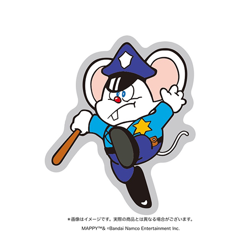 1983年にアーケードに登場した、ネズミの警察官マッピーが、泥棒猫ニャームコと手下の猫ミューキーズをかいくぐり、ステージに点在する盗品の数々を取り返していく、痛快追いかけっこゲーム『マッピー』。パッケージにも描かれた警察官マッピーの姿が、コレクションするも良し、バッグなどに付けるも良しなピンズとなって登場!あのビジュアル懐かしすぎる、レトロゲーム愛が満たされるアイテム。