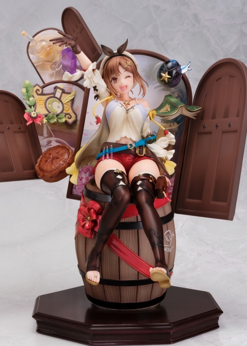 ゲーム『ライザのアトリエ ~常闇の女王と秘密の隠れ家~』から、主人公の「ライザ」ライザリン・シュタウトがシリーズ25周年記念仕様でPVC化です。トリダモノ氏が「アトリエシリーズ25周年記念 ポップアップショップ in amiami」のために描きおろしたイラストを魅力たっぷりに立体化しました。元気いっぱいで無邪気なかわいらしさの残るライザの姿をポージングにこだわって表現!ヒトデのペンダントや腰のフラスコなどのディティールも細部まで造形。台座は記念品をイメージした高級な質感になっており、25周年を記念するロゴもプリント!DX版では、歴代「アトリエ」シリーズに縁のあるアイテムが扉から飛び出してくる様子を再現したヴィネット風に。シリーズ名物の「たる」に座ったライザが、あなたを「アトリエ」世界へ誘います。