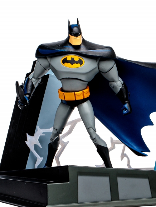 高い造型力とクオリティに定評のあるマクファーレントイズが新たに展開する「DCダイレクト」ブランド。そのレガシーを受け継ぎ、かつてDCコレクティブルズが展開していた『バットマン アニメイテッド』6インチシリーズを復活!劇中に登場するバットマンを、全高約15センチ、約22箇所可動、独特なシルエットをそのままに、造形や質感にこだわり、細部に至るまで立体再現。取り外しが可能な背部ウィング、バットラング2つ、豊富な差し替え用ハンドパーツ、支柱がついた台座が付属。