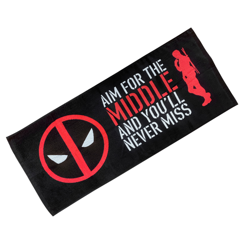 映画『デッドプール』シリーズの第3弾となる『デッドプール&ウルヴァリン』。待望のX-MENメンバー参戦で盛り上がりを見せる中、"クソ無責任ヒーロー"デッドプールと"キレるとヤバい最恐アウトロー"ウルヴァリンのデザインが入ったグッズが続々登場!こちらは、「AIM FOR THE MIDDLE AND YOU'LL NEVER MISS(真ん中を狙えば絶対に外さない)」という文字と共にデッドプールのアイコンとシルエットが入ったフェイスタオル。