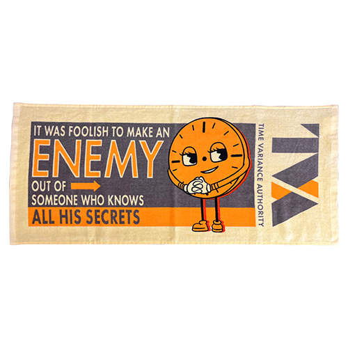 闇の監視組織TVAで統制されていた"世界の時間"は崩壊し制御不能に陥いる中で、裏切り王子ロキが世界を救う!?そんな今後のMCUにも関わってきそうなドラマ『ロキ』シーズン2から、実用的なグッズが続々登場!こちらは、ミス・ミニッツが不敵に笑うインパクト十分なフェイスタオル。TVAのロゴがデザインされているのもGOODです。