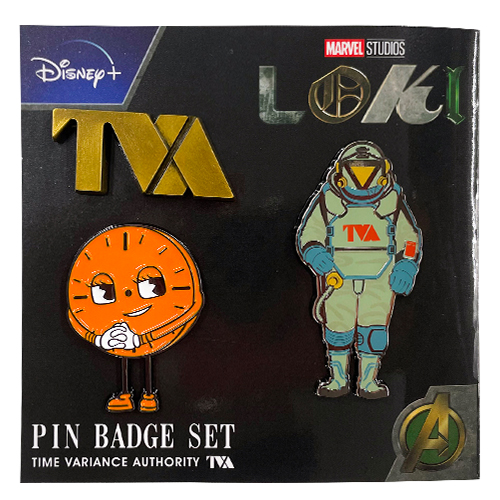 闇の監視組織TVAで統制されていた"世界の時間"は崩壊し制御不能に陥いる中で、裏切り王子ロキが世界を救う!?そんな今後のMCUにも関わってきそうなドラマ『ロキ』シーズン2から、実用的なグッズが続々登場!こちらは、TVAロゴ、ミス・ミニッツ、TVAスーツの3種のピンバッジセット。バックなどにさりげなくTVAをつけられるアイテム!