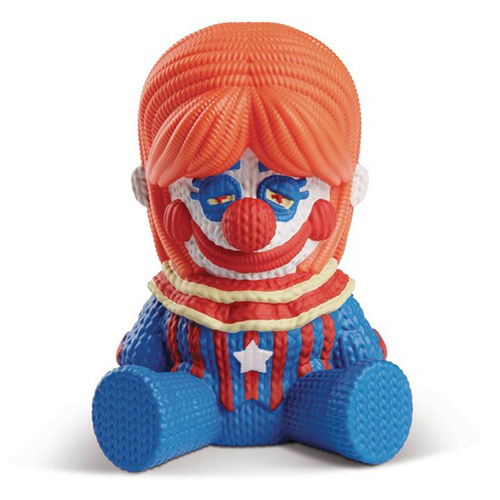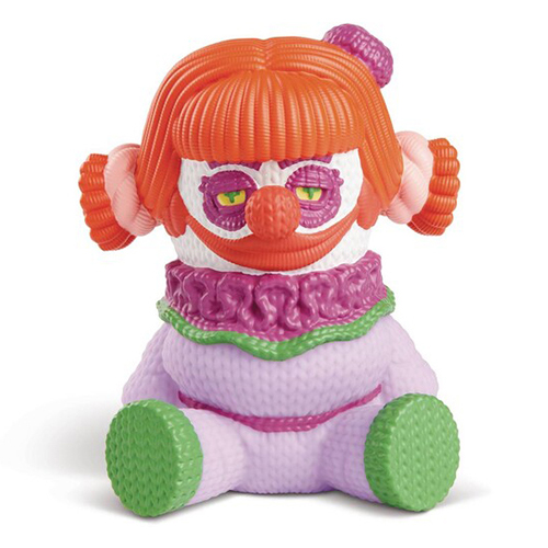 まるで手編みのニット素材のような、やわらかそうでデコボコな風合いをディテール再現した、ぬいぐるみの様なヴァイナルフィギュアをリリースする「ハンドメイド・バイ・ロボッツ」。おしり辺りから出たタグまで再現する熱の入れようにはビックリ!こちらはカルトな人気を誇る1987年の映画作品『キラークラウン』に登場する、ピエロ型宇宙人の一人デイジー。