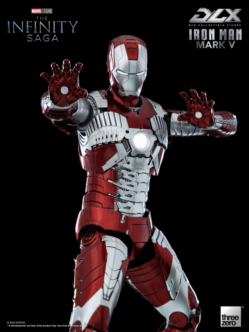 threezeroとマーベルスタジオによる「アベンジャーズ インフィニティ・サーガ」DLXシリーズの新作は、アイアンマン・マーク5!映画『IRON MAN 2』に登場したマーク5を、全高約18センチでフィギュア化。ボディのシルバーとレッドはマルチレイヤー塗装し、質感も演出。DLXダイキャストシステム搭載により、劇中で見られる「簡易アーマー」感のイメージそのままに確かな重さ、そして全身48箇所可動と、リアルとアクションを共に実現しております。LEDライトアップは胸部と両目に搭載、背部の4つのフラップは開閉可能。「マーク5」スーツに変形するエマージェンシースーツケースがまさかの付属!さらに交換式手首パーツ5対、シューティングポーズ用と飛行ポーズ用のエフェクトパーツ、そしてDLXアクションスタンドが付属し、劇中演出でのディスプレイが捗ります。