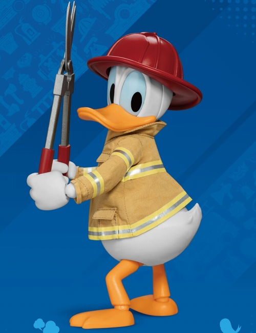 台湾ビーストキングダムによる「ダイナミックアクションヒーローズ」シリーズに、『ミッキー&フレンズ』から、消防士になった「ドナルドダック」が全高約17センチのアクションフィギュアとして登場!布製の防火服や赤いヘルメットなど、ディテールや質感を細部まで再現しています。ヘルメットは着脱が可能。ヘッドはフェイスパーツが2種と、眼部パーツが4種付属するので、差し替えることでさまざまな表情を演出できます。アクセサリーとして、ハサミ、斧、ハンマーが付属。また、アニメーションならではの二足歩行の炎が付いてくるのも嬉しいポイント!同シリーズの「消防士ミッキーマウス(別売)」に付属するホースやはしごを使うなど、お互いのアクセサリーで遊べます。