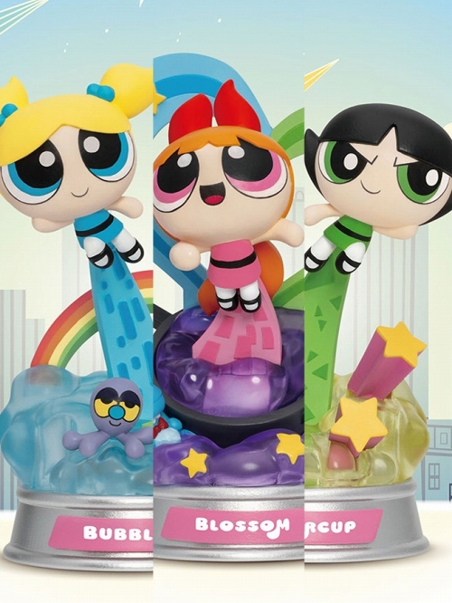 台湾ビーストキングダムの、ミニサイズのジオラマスタチューシリーズ「ミニDステージ」。新たに、アメリカ・カートゥーンネットワークのアニメ、『パワーパフガールズ』シリーズが始動!シリーズ1として、全高約12センチのキャラクターたちが12個入りBOXで登場!それぞれの台座は、各キャラクターをイメージし、ポップでキュートなデザインに。キャラクター名もあしらわれ、細部まで精巧に造形されています。ラインナップは、ブロッサム、バブルス、バターカップ、モジョ・ジョジョ、ファジー・ラムキンズ、アメーバ・ボーイズの6種に加え、さらにシークレットとして、ユートニウム博士が収録されています。「パワーパフガールズ」の3人は連動ギミックも!ブロッサムの台座にバブルスとバターカップを取り付けることで、3人一緒のスタチューにすることもできます!
