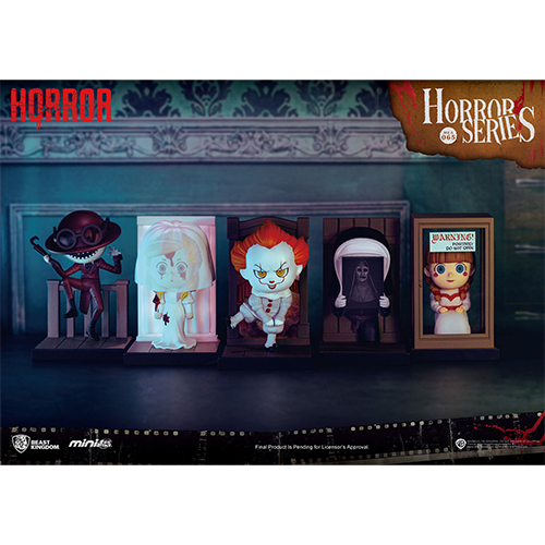 台湾のメーカー、ビースト・キングダムがお贈りする、小さくてキュートなデフォルメ・スタチュー「ミニ・エッグアタック」シリーズに、「ワーナーホラー」シリーズ1がラインナップ!ワーナー・ブラザースのホラー映画に登場する人気キャラクターたちを、キュートにデフォルメして、それぞれ全高約9cmのミニ・スタチューとして立体化!『IT/イット』シリーズよりペニーワイズ、『死霊館』ユニバースよりアナベル、ヴァラク、クルックドマン(へそ曲がり男)、ラ・ヨローナ(泣く女)の5種にスペシャルエディションの血まみれなアナベルを加えた全6種。