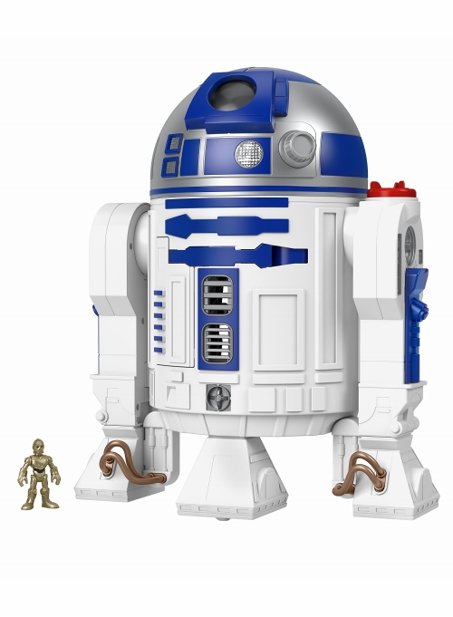 1930年に誕生し、世界中のベビーからキッズ、そしてママに愛されるブランド「フィッシャープライス」。そのフィッシャープライスのシリーズ「イマジネクスト」が『スターウォーズ』を大フィーチャー!全高約43センチとなったR2-D2、「光る!鳴る!飛び出す!」と子供から大人まで全員大好きギミックが搭載。主語デカいが、間違いないはず。赤くなっている肩「パワーパッド」部(通称レッドショルダー)、そこにミニサイズのC-3POを乗せると…回り出す!これであそびたい、ずっと。