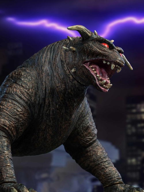 80年代を代表するSFコメディ映画『ゴーストバスターズ』。1984年公開のこの大人気作に登場した、門の神「ズール」が、スターエーストイズからソフビスタチュー化です!ズールはゴーザの門番として登場したテラードッグ。見た者を震え上がらせるようなその巨大な体躯が、全長約20センチで再現されました。DXバージョンでは、ズールをディスプレイできる専用ベースが付属。さらに、瞳が赤く発光するギミックを搭載!悪の権化が恐ろしい存在感を放ちます。