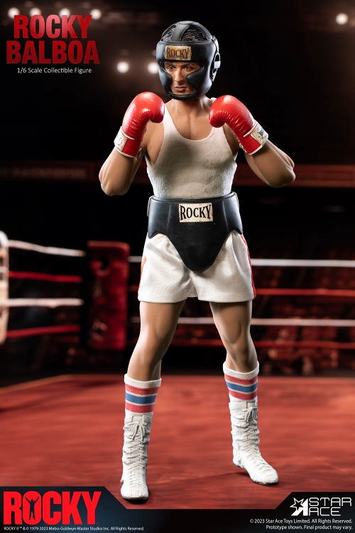 主演の「スライ」シルヴェスター・スタローン自らが脚本・監督を務めたシリーズ第2作、1979年公開の映画『Rocky 2』。その主人公である「イタリアの種馬」ロッキー・バルボアを、スターエーストイズがまさかのアクションフィギュア化です!今回はボクサースタイルでの立体化で、アポロとの再戦に挑む姿を再現しました。アクセサリーとしてチャンピオンベルトやグローブ、交換用のハンドパーツ等が付属します。素体にはロッキー専用に開発されたカスタムシームレスボディを採用されるなど、『ロッキー』ファンには見逃せないアイテムとなりました!こちらはトレーニングウェアの上下セット、ヘッドガード、プロテクター、ガウンが追加付属したデラックスバージョンです。