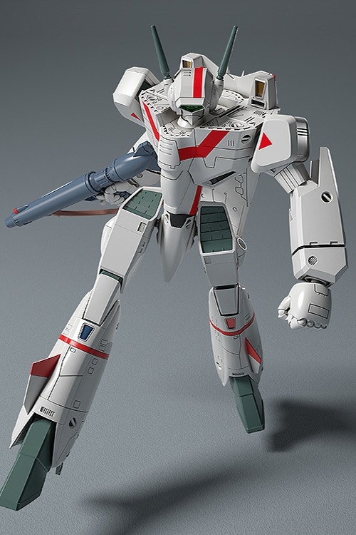 テレビアニメ『超時空要塞マクロス』より、主人公の一条輝が初めて登場するバリアブルファイター「VF-1D」が、バトロイド形態のまったく新しいプラモデルとして誕生。設定画やアニメ登場時のイメージを大事にした力強いプロモーションは、変形を廃しバトロイドオンリーにすることで実現。各パーツは5色で形成、組み立てることで水転写デカールを貼るだけでも、実感のある仕上がりになります。劇中にて被弾した痕もデカールによって再現。同スケールの「一条輝」の着座タイプフィギュアに加え、シートが上昇したパーツ、「リン・ミンメイ」「ヨっちゃん」のフィギュアが付属します。
