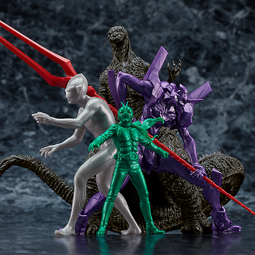 『シン・ゴジラ』、『シン・エヴァンゲリオン劇場版』、『シン・ウルトラマン』、『シン・仮面ライダー』の4作品がコラボレーションする奇跡のプロジェクト『シン・ジャパン・ヒーローズ・ユニバース』より、前田真宏氏が描くメインビジュアルを4体1組でプラモデル化。それぞれのキャラクターにマッチするよう、選びぬかれたメタリックカラーのプラスチックパーツは全5色を使用。組み上げるだけでメインビジュアルの迫力ある構図でディスプレイできるよう、各キャラクターのサイズ差も忠実に再現。仮面ライダーの「スーツアクターらしさ」、ウルトラマンの「美しい立ち姿」、エヴァンゲリオン初号機の「力強いメカ表現」、そしてゴジラの「圧倒的な表面ディテール」と、それぞれにマックスファクトリーが培ってきた固定ポーズプラモデルの技術を注ぎ込みました。硬質な素材で構成されているとは思えないほどの立体表現は、プラモデルの歴史におけるひとつの到達点。あらゆるアニメ・特撮ファンの皆様に手にとっていただきたい、究極のアイテムです。