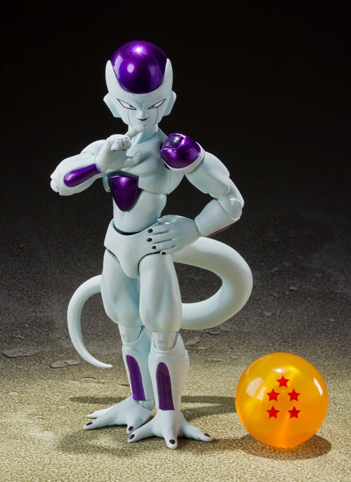 劇中イメージに近づけたフォルムバランスと、ポージングを行った際にシルエットが崩れない関節構造、その二つを兼ね備え、更なる進化を遂げた次世代「S.H.フィギュアーツ」シリーズ。『ドラゴンボールZ』から、フリーザの第四形態がラインナップ。交換用頭部パーツや交換用手首パーツに加え、発光時をイメージしたナメック星ドラゴンボール(五星球)が付属。