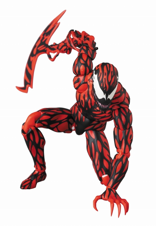 メディコム・トイがおくる史上最強のアクションフィギュアシリーズ「マフェックス(MAFEX)」。全高約15センチレベルのボディに新規設計のジョイントパーツを設置し、ディスプレイしやすく大胆なポージングも可能!マーベルコミックから「カーネイジ」がシリーズ初登場です。特徴的な表情やパーツなど、コミック版のイメージを完全再現!武器をイメージから具現化させたシンビオートは、多数の専用ジョイントパーツとして付属します。