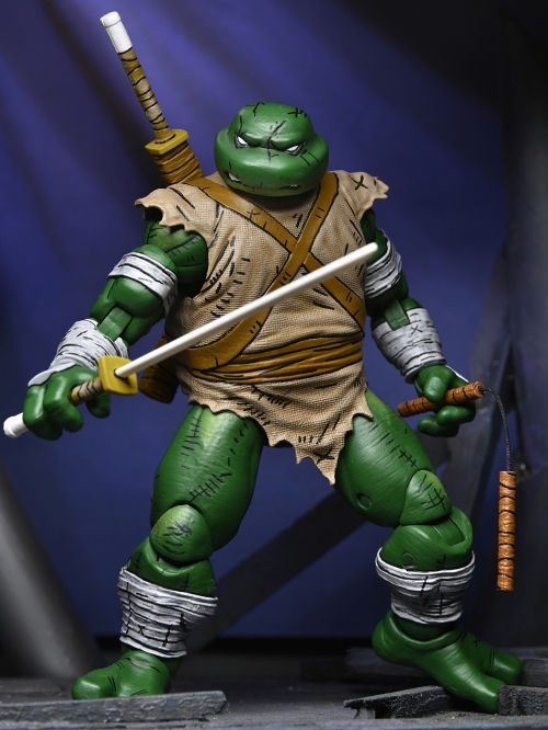 1984年、ケヴィン・イーストマン&ピーター・レアードによりミラージュコミックスで誕生したタートルズ。そんな初期タートルズから、放浪者の姿のミケランジェロが登場!全身傷だらけの姿のミケランジェロを7インチアクションフィギュアで見事に再現。剣、槍、カマ、ヌンチャク2つ、交換可能な追加のハンドパーツ2種など、コミックに忠実なアクセサリーが付属しています。原作コミックを手掛けたケヴィン・イーストマンのイラストによるコミックをテーマにしたウィンドウボックスにも注目です。