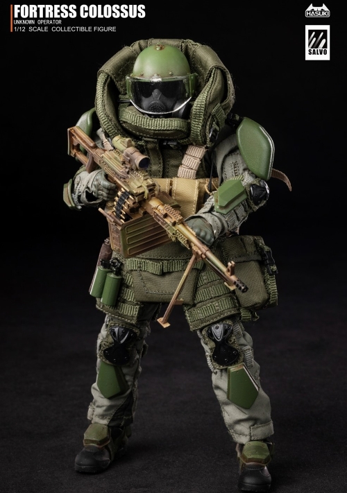 フィギュアメーカー・HASUKIが展開する、リアルな造形の装備が魅力的なミリタリーライン「SALVOシリーズ」。新たに「フォートレスコロッサス」の1/12スケール、全高約17センチのアクションフィギュアがラインナップです!全身重装備のフォートレスコロッサスはアサルトライフルやマシンガンなど豊富なアクセサリーが付属。一部布製のミリタリーウェアなどもリアルな雰囲気抜群で、非常にクールなアイテムです。