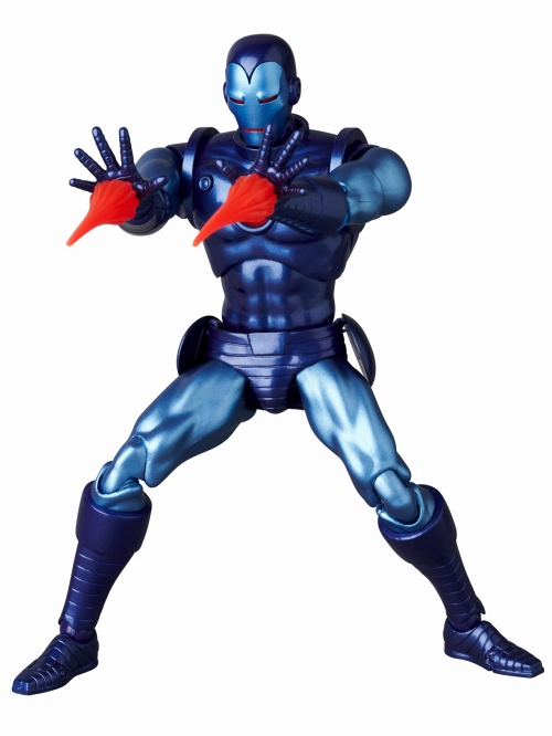 メディコム・トイがおくる史上最強のアクションフィギュアシリーズ「マフェックス(MAFEX)」。全高約16センチレベルのボディに新規設計のジョイントパーツを設置し、ディスプレイしやすく大胆なポージングも可能!マーベルコミック新作として、ステルスバージョンのアイアンマンが登場です!青く輝くボディのステルスアーマーをコミックイメージ通りに立体化。形状の異なるマスク2種に加え、それぞれ目元からトニー・スタークの瞳が見えた状態も再現できるのが嬉しいポイント。付属のリパルサーなどのエフェクトパーツや可動式フィギュアスタンドを併用して、アイアンマンらしい様々なシーンを演出可能です。