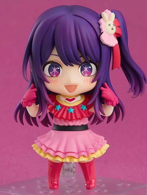 大人気TVアニメ『推しの子』より、作品の象徴的なアイドル「アイ」が待望のねんどろいど化です!アイドルグループ「B小町」の絶対的なセンターであるアイ。特徴的な両目に輝く星はデフォルメになっても健在です。アクセサリーとして、交換可能な表情パーツ全3種(笑顔、アイドル顔、にっこり顔)に加え、パフォーマンスにかかせないマイクなどが付属しています。魅力的なライブステージを演出してお楽しみください!