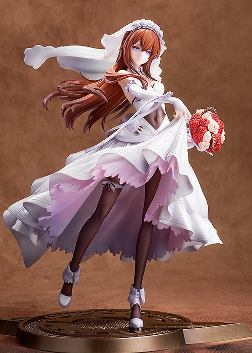 想定科学アドベンチャー『STEINS;GATE』より、「牧瀬紅莉栖」がウェディングドレス姿で全高約26センチ、1/7スケールでフィギュア化です!彼女の普段着の要素を取り入れてウェディングドレスをデザインし、立体化。ドレスの裾を持ち、幸せそうな表情を浮かべてくるりと廻る姿を、丁寧な造形と彩色で表現されています。台座は大切なラボメンバッジをモチーフに造形し、ウォッシング塗装で質感も再現。この奇跡的な瞬間を是非お手元でご堪能ください。
