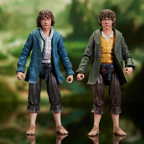 ダイアモンドセレクトトイが展開する、映画『ロード・オブ・ザ・リング』のアクションフィギュアシリーズ。新作として、フロドの親友であるホビット族のメリー、ピピンがラインナップ。全高約10センチ、4インチのフィギュアながら、映画のイメージに極めて忠実に造形。衣装の汚し塗装や、旅の中で傷ついた足。指輪をめぐる旅のその過酷さが伝わってくるようなみごとな仕上がりとなっています!