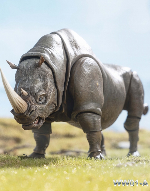 ワイルドウォーから武装した「ジャイアントホーン」ライノセラスがアクションフィギュアとなりました。設定などミリ知ら、そもそも設定あってもなくてもこのトキメキは止められない。そんなアグレッシブスタイルで魅力あるサイ。サイズは何をもってしてのスケールか不明ならが1/12スケール、全高約16センチ、全長約36センチと大型!こちらはノーマルなライノセス、ノーマルってなんだ。