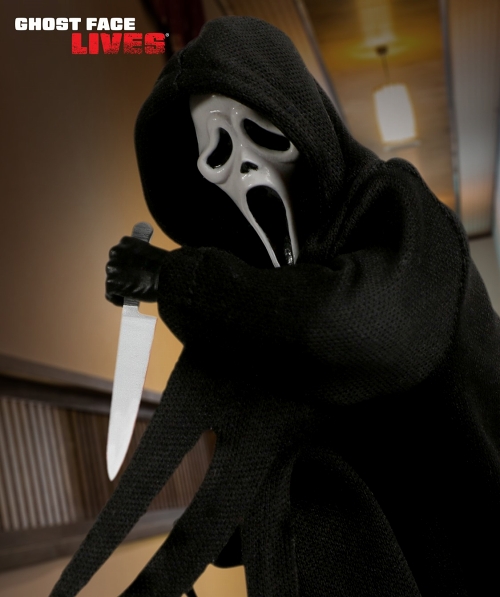 メズコトイズのプロダクトライン「ワン12コレクティブ」1/12スケールフィギュアシリーズに、恐怖の象徴ゴーストフェイスが登場です。ウェス・クレイヴンによる映画『スクリーム』シリーズや、非対称ホラーサバイバル対戦アクションゲーム『Dead by Daylight』へのコラボ参戦でも知られる存在「ゴーストフェイス」。ワイヤー入りの黒ローブでフード&袖に「表情」がつけられ、人々を恐怖に陥れる猟奇的な場面を切り取ったかのようなポージングが可能です。さらに、差し替え可能なマスク全4種(ノーマル、ゾンビ、蓄光、血飛沫)、手首パーツ全8種、鎌、ナイフ、包丁、ポップコーン、テレビリモコン、血しぶきエフェクトパーツ全4種、専用台座と豊富なアクセサリーが付属。ホラー映画を自宅で楽しむ、そんなif世界なシチュエーションでのディスプレイも楽しめそうです。多くのホラーファンに愛される怪物が、圧倒的完成度による「決定版」な立ち位置で、あなたのコレクション欲に襲い掛かります。