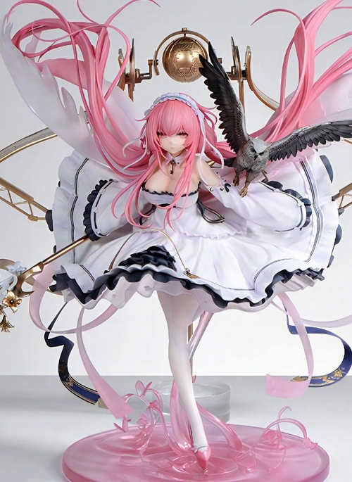 大人気スマートフォンゲーム『アズールレーン』より、ロイヤル所属の軽空母「パーシュース」が全高約30センチ、1/7スケールで立体化!ゲームでのイメージ通り純白のドレスを身に纏ったパーシュース。彼女の脇を飛ぶフクロウ、後部には天球が浮かび、非常にボリューム感ある仕上がりとなりました。ディスプレイ台座も彼女の衣装に沿うようにデザインされ、非常に雰囲気があります。