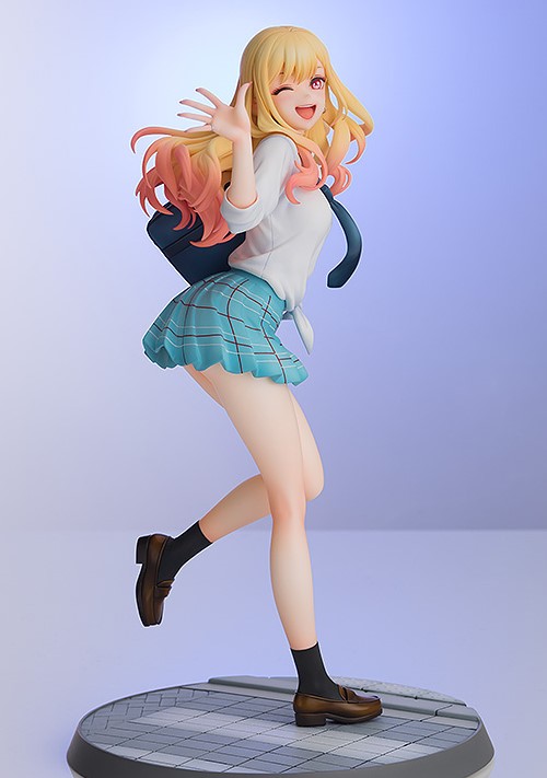 人気TVアニメ「その着せ替え人形は恋をする」より、クラスの人気者「喜多川海夢」が全高約23センチ、1/7スケールフィギュアで登場です!劇中シーンである、新菜をコスプレ衣装の素材探しの買い物へと連れ出す場面を再現。無邪気な笑顔と躍動感ある振り向きポーズで立体化されました。今回の海夢の髪は、アニメ3話での巻き髪姿を再現。市街地をイメージした、ブロック調のビネット風台座にいたるまでこだわって造形されています。海夢との楽しいひと時を是非お楽しみください。