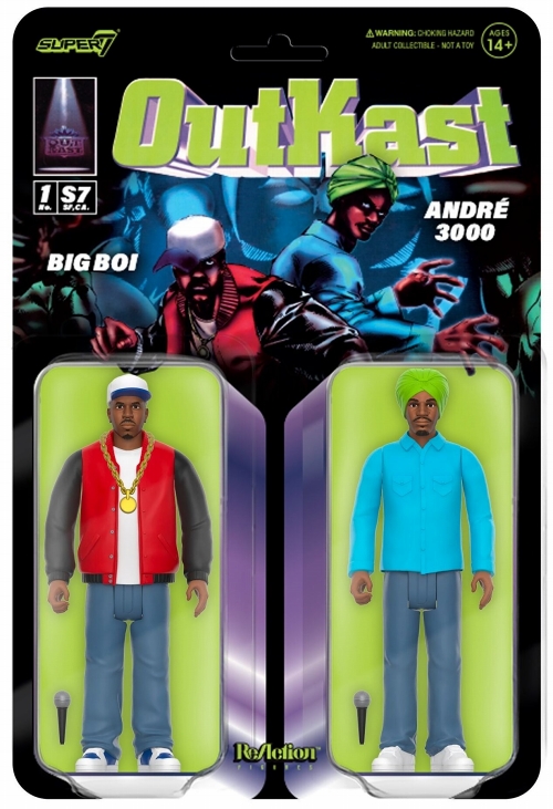 1992年の活動開始以降、独創的な音楽スタイルでアメリカのヒップホップシーンを牽引したヒップホップデュオ「アウトキャスト」。アルバムの総売上が2000万枚以上にものぼるという伝説のグループから、メンバーであるラッパーのビッグ・ボーイ、そしてアンドレ・3000が、スーパー7の「リ・アクション」として復活!今回は、1996年リリースの2ndアルバム『ATLiens』のジャケットからインスパイア!アクセサリーとしてそれぞれにマイクが付属。ビッグ・ボーイが首に下げたゴールドのネックレスは取り外し可能です。アルバムのジャケットアートが描かれたバックカードにも注目です!