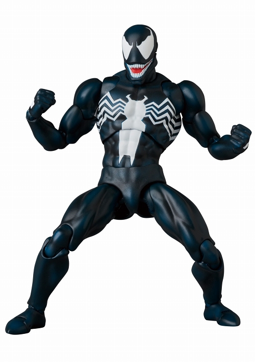 メディコム・トイがおくる史上最強のアクションフィギュアシリーズ「マフェックス(MAFEX)」。全高約15センチレベルのボディに新規設計のジョイントパーツを設置し、ディスプレイしやすく大胆なポージングも可能!トム・ハーディ主演の映画も盛り上がった「ヴェノム」、マーベルコミックバージョンで登場です。頭部は基本のオープンマウスのほかに、クローズマウス、エディ・ブロック素顔の全3タイプが付属。差し替えのハンド&フットパーツには磁石が内蔵され、磁力のある壁などに簡単なポージングが可能となりました。