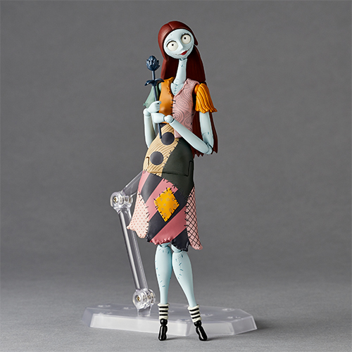 ティム・バートンによる傑作ストップモーション映画『ナイトメア・ビフォア・クリスマス』から、ヒロインのサリーがリボルテックに登場!自身と同じく継ぎ接ぎの布でできたワンピースもカラフルに再現しながら、ロングスカートの裾が前後それぞれに可動するギミックにより座りポーズも取らせることも可能に。ぱっちりと目を開いた通常顔に加え4種の交換用フェイスも付属して、正面と左右目線の眼球パーツを交換することでさらに表情豊かに演出!目元にはチャームポイントのまつ毛も丁寧に再現してありますのでご注目を!縫い付けた糸がほどけると、手足がバラバラになってしまうサリーを関節部分の取り外しにより再現できるのに加え、断面から詰め物の葉っぱが溢れている様子を表現する追加パーツも付属します。さらにジャックの愛犬ゼロと、名もなき墓碑のディスプレイベース、手持ちアイテムとしてジャックのクリスマス計画を占った花など、劇中シーンを再現できる豊富パーツも付属。