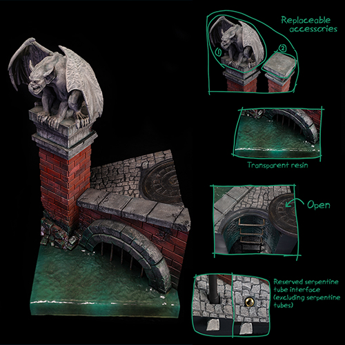 "あの"闇騎士だったり"あの"亀忍者たちだったり、コミックや映画でたびたび見かけるガーゴイル、橋、下水道がギュギュっとひとつになったジオラマベースが登場です!コレクションしたフィギュアたちをディスプレイするも良し!お気に入りのキャラクターの写真を撮るも良し!色々と楽しめてお部屋の雰囲気もググっとアップしてくれそうなジオラマベースになっております!