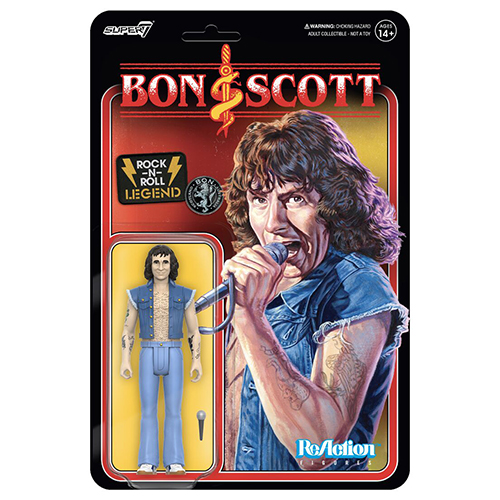 全世界で推定2億枚の売上。ロック史を語る上で避けては通れないモンスターバンド「AC/DC」。その初代ボーカルで1980年にこの世を去ったボン・スコットが、スーパー7の贈るリアクションフィギュアシリーズで復活!AC/DC時代の後期、フロントマンとして長髪、タトゥー姿で活躍した姿からインスパイアされたアイテムになっています。